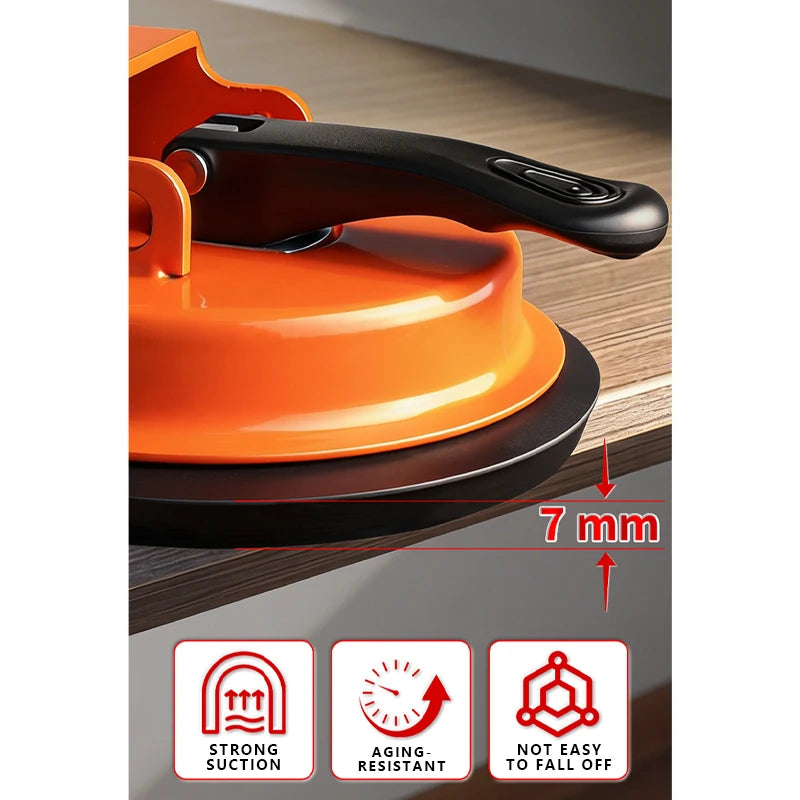 Adherencia fuerte y estable: el diseño con sello de vacío garantiza una fijación segura y fiable, incluso cuando el usuario aplica una fuerza lateral importante. La ventosa resiste el desprendimiento accidental, asegurando tanto la eficacia del apriete como la seguridad del operador.