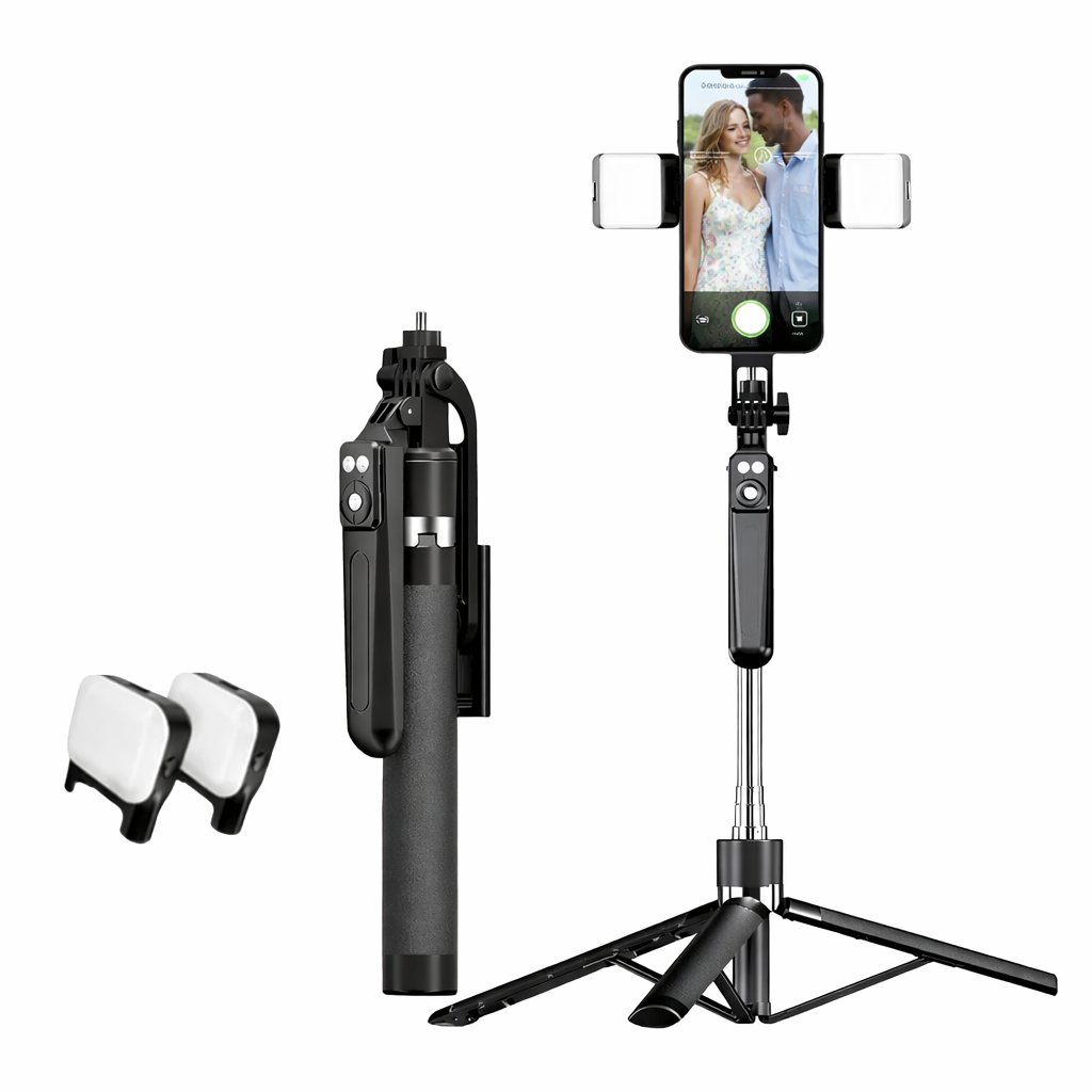 Amplía tus horizontes y captura cada momento desde el ángulo perfecto con este palo selfie extensible de 170 cm . Fabricado en robusto acero inoxidable , este palo 3 en 1 combina la función de palo selfie, un trípode estable y un control remoto inalámbrico Bluetooth para un control total. Su cabezal giratorio de 360° y su compatibilidad universal lo convierten en el accesorio perfecto para selfies grupales, vlogs, viajes y creación de contenido para redes sociales .