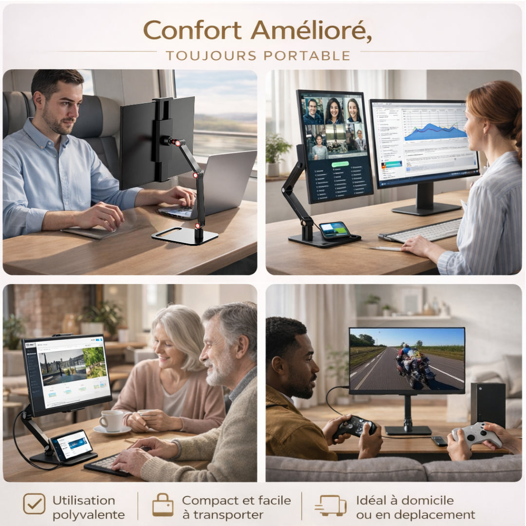 L’un des atouts majeurs de ce produit est sa portabilité. Contrairement à de nombreux supports fixes, ce modèle est conçu pour être facilement déplacé et réinstallé. Il est donc parfait pour les professionnels nomades, les télétravailleurs ou toute personne souhaitant monter et démonter rapidement son espace de travail. Aucun assemblage n’est requis, le produit sort de son emballage prêt à l’emploi.