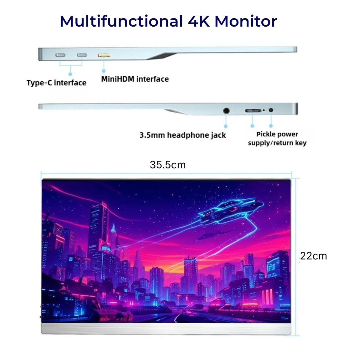 Ce moniteur portable de 15,6" offre une résolution 4K Ultra HD (3840x2160) pour une image d'une netteté exceptionnelle, idéale pour les jeux, les films et la productivité. Avec une couverture 100% sRGB, des 500 nits de luminosité et la technologie HDR400, profitez de couleurs vibrantes et de détails précis même en plein soleil.