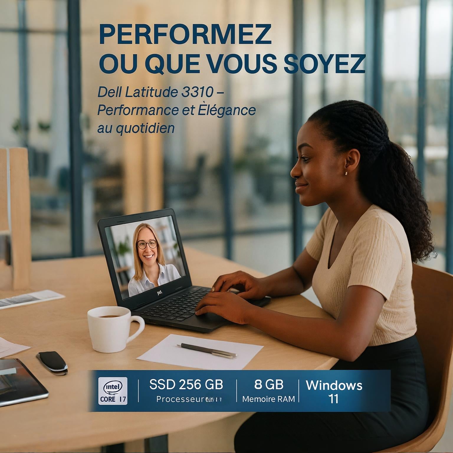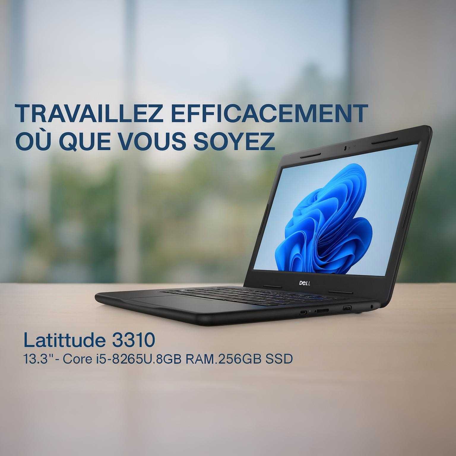 Découvrez le Dell Latitude 3310, l'ordinateur portable 13.3" alliant performance, mobilité et robustesse. Conçu pour les professionnels et les étudiants exigeants, ce PC portable est équipé d'un processeur Intel Core i5-8265U de 8ème génération (Quad-Core jusqu'à 3.90 GHz) et de 8 Go de RAM DDR4 pour une multitâche fluide et une réactivité optimale sous Windows 11 Home.