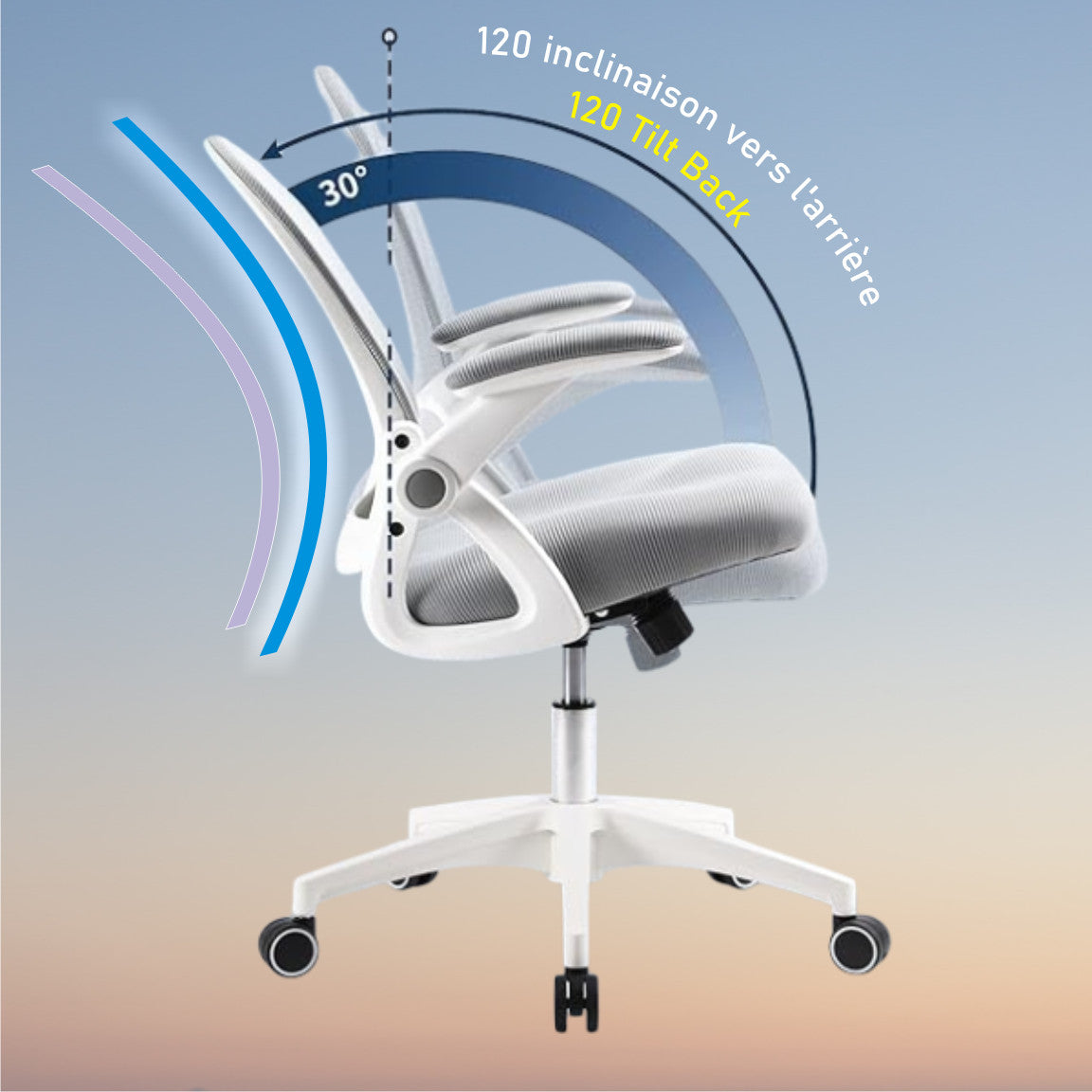 • Confort Ergonomique Total : Dossier haut en mesh respirant et support lombaire intégré pour un maintien dorsal parfait et une fraîcheur assurée. Siège inclinable à 120° pour vous détendre pendant les pauses.