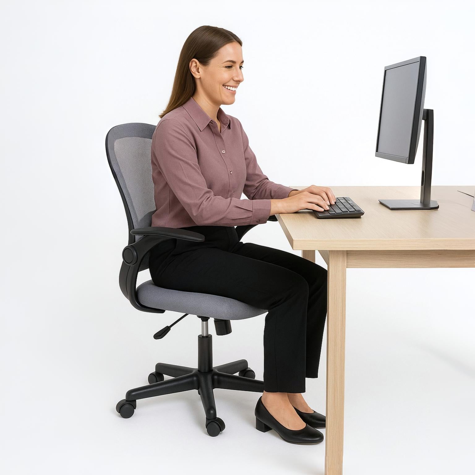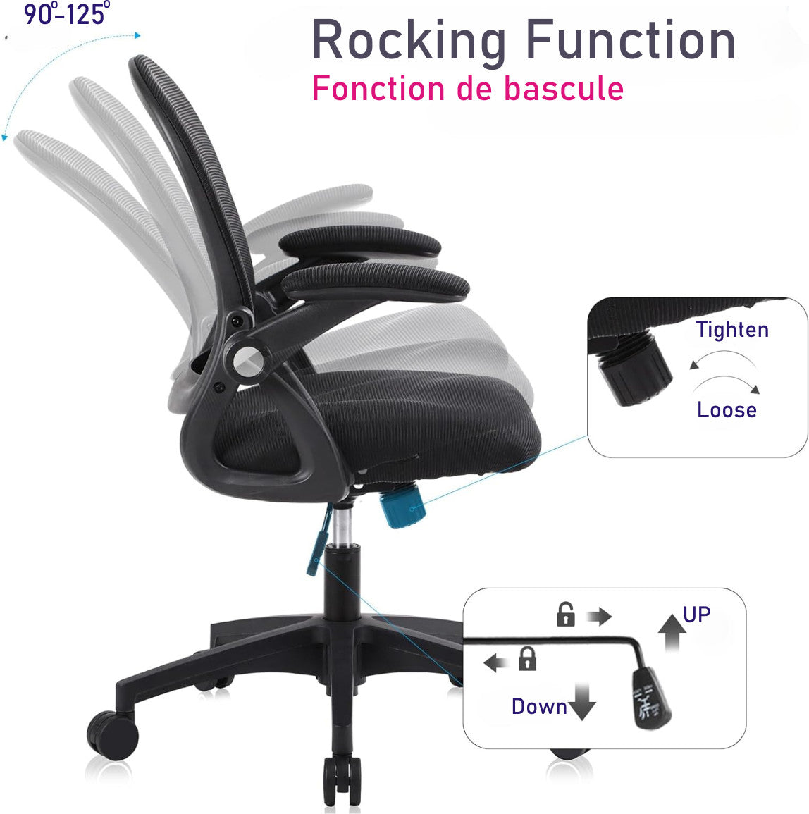 • Ajustements Personnalisés : Réglage facile de la hauteur du siège et des accoudoirs rabattables à 90°. Rangez-la facilement sous le bureau pour gagner de l'espace.
