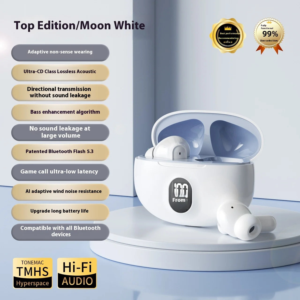 Affichage de Puissance Intégré – Visualisez le niveau de batterie directement sur l’étui de charge pour une gestion optimale de l’autonomie.