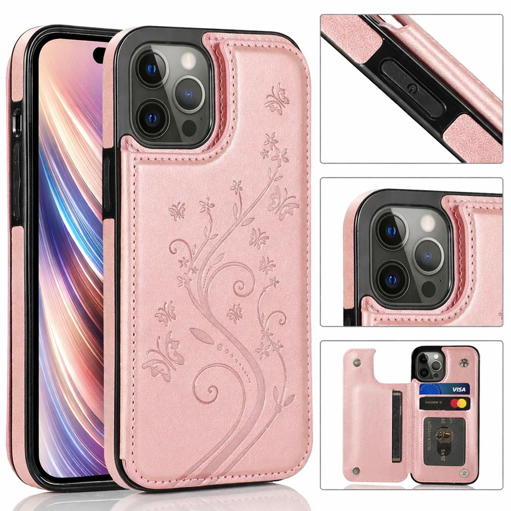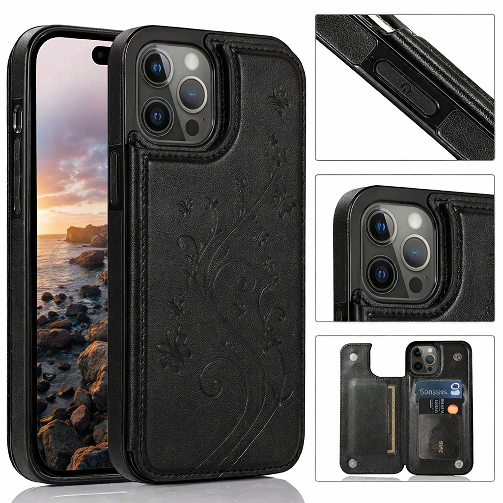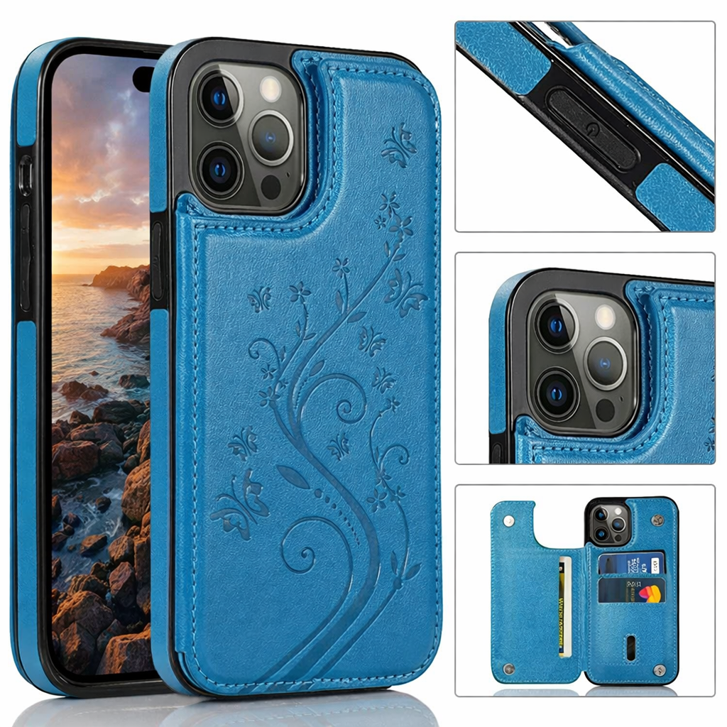 Alliez élégance raffinée, organisation pratique et protection maximale avec cet étui portefeuille pour iPhone à fermeture magnétique et motif en relief papillon. Fabriqué en cuir PU de haute qualité et TPU souple, cette pochette flip intègre des compartiments à cartes, un support intégré et une fermeture magnétique sécurisée. Son design avec empreinte papillon ajoute une touche de délicatesse, tandis que sa protection antichoc double couche préserve votre iPhone 16 Pro Max, iPhone 16e, iPhone 15 et modèles antérieurs des chocs, rayures et poussières.