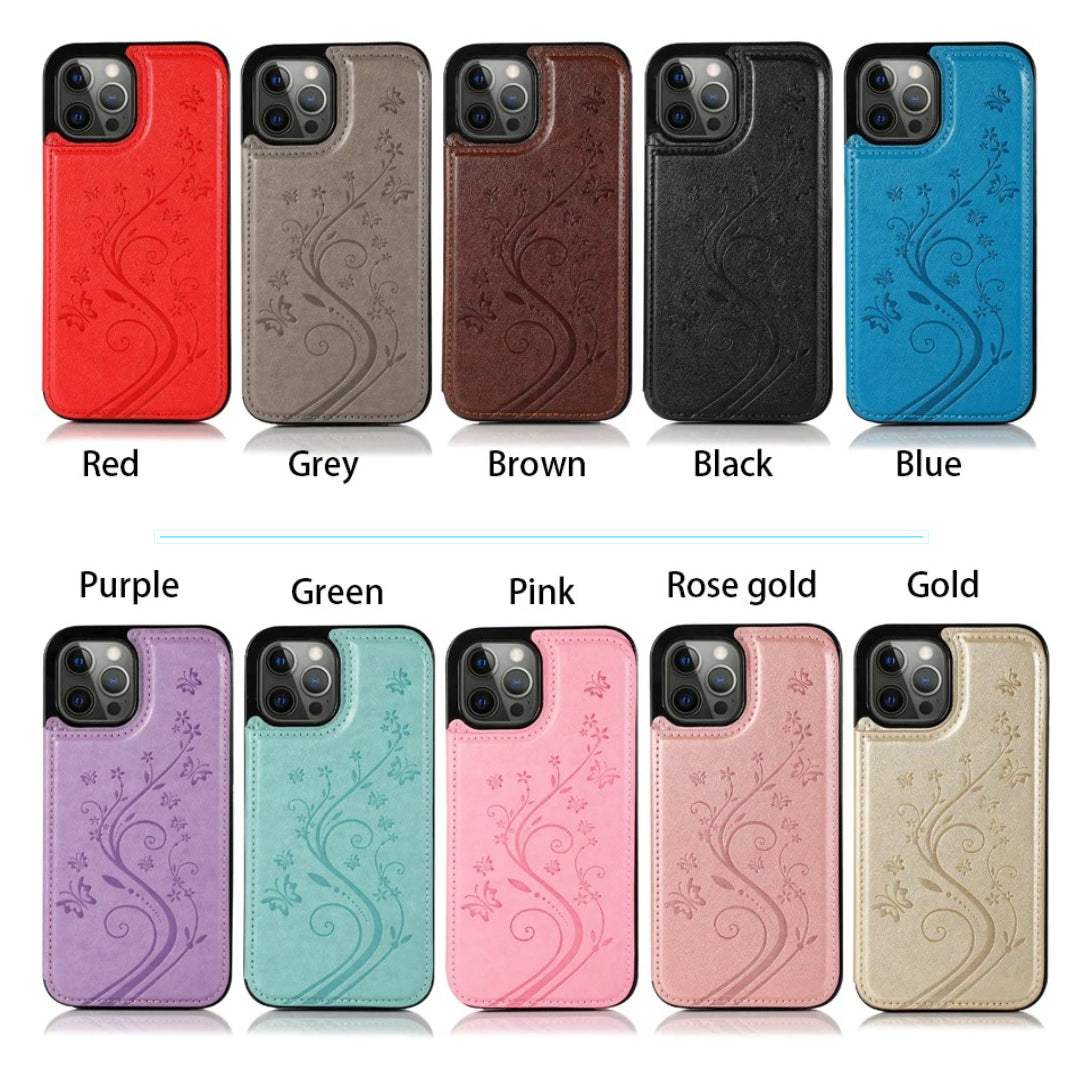Idéal pour les femmes recherchant un accessoire à la fois pratique, protecteur et esthétique, alliant tendance (motif papillon) et fonctionnalité (porte-cartes, support).