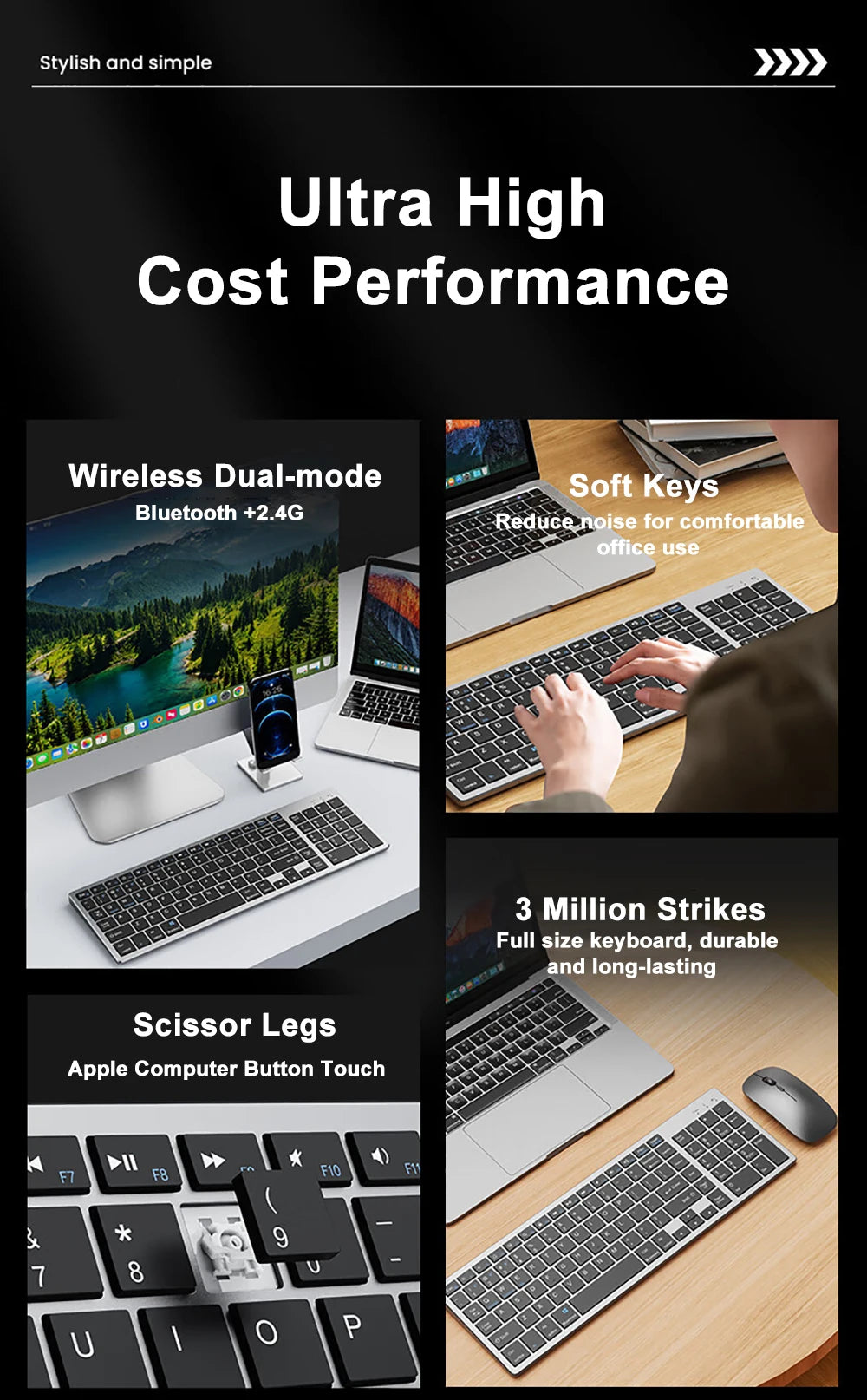 ✅ Design slim et léger : un clavier élégant, compact et portable, facile à transporter pour le bureau, la maison ou les déplacements.