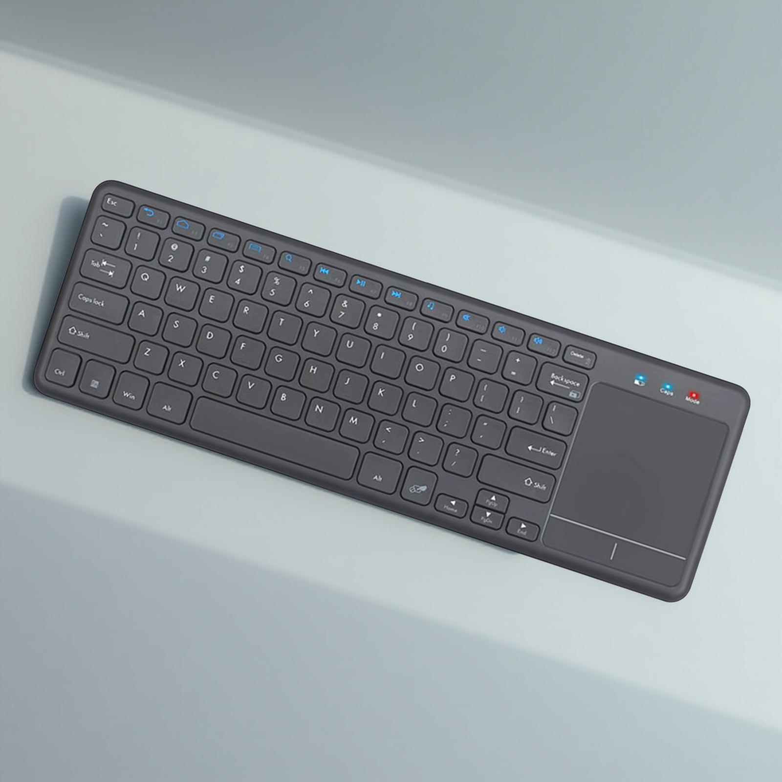 Avec ses 78 touches compactes et son design léger et durable, ce clavier est parfait pour un usage quotidien à la maison, au bureau ou en déplacement. Son trackpad intégré remplace efficacement la souris, offrant une expérience fluide et intuitive, notamment pour le contrôle des Smart TV et la navigation multimédia.