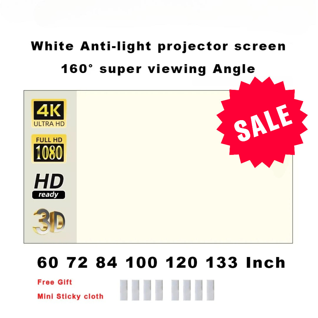 Écran de Projection Anti-Lumière 16:9 - Toile Réfléchissante Portable 60 à 133 Pouces - Grille Blanche Haute Définition 4K - Gain x2.5